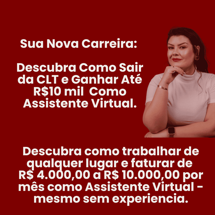De CLT exausta a Assistente Virtual de sucesso: aprenda no meu guia o método que me fez sair da rotina cansativa e alcançar até R$10 mil por mês trabalhando de qualquer lugar.